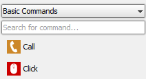 Use the Command List to select a command to insert into the script. Select from different collections of commands using the drop-down or search for a command using the search field.