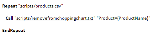 The Call command may contain parameters to the script to execute. You may also specify a number of times to repeat the script before completing. For details, see the Call command in List of Commands.