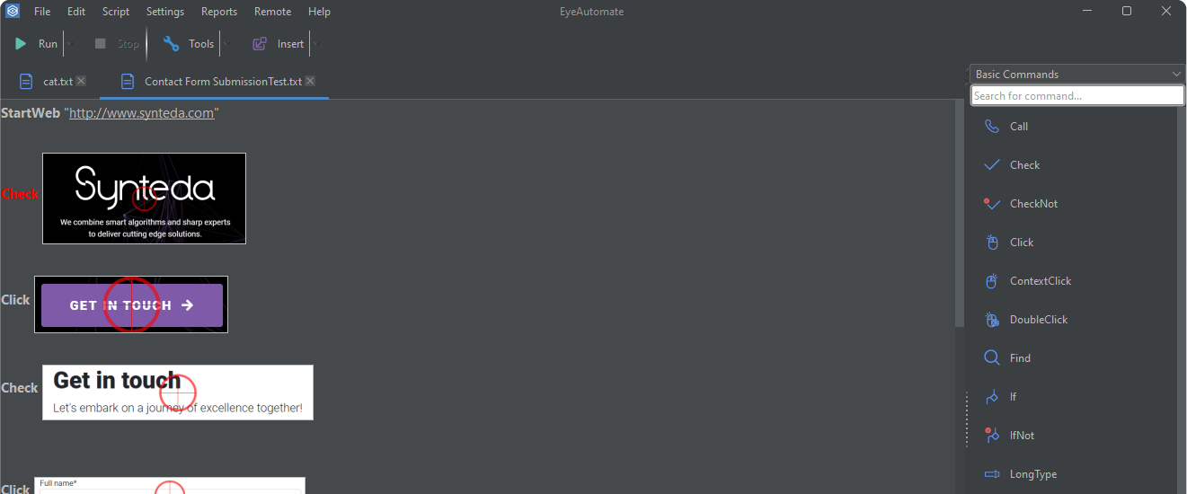 Effortlessly create and run visual scripts with precision. Together, EyeAutomate and EyeServer provide robust automation capabilities, from visual scripting to real-time test management—all in one solution.